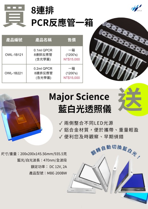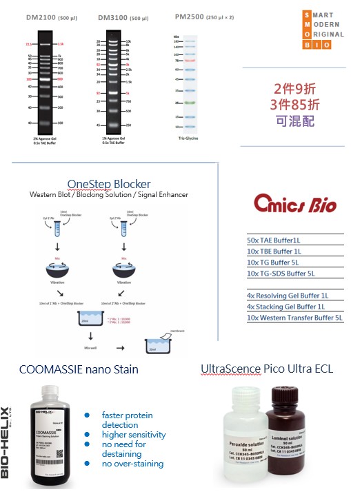2026/01-06: Markers, RTU Buffer, Western Tools 相關連結:https://bio-helix.com/products/234 2026/01-06: Major Red Plus, FlurorDye 核酸安全染液 2026/01-06: PCR Master Mix, ExTaq, Viogene Isolation Kit 2026/01-06: 針筒過濾碟, HPLC樣品瓶 SMOBIO: QPCR Reagents (2026) MN: RNA Isolation Kits (2026) OWL: 8-Strips PCR Tube (2026) OWL: Filter Tip (2026)